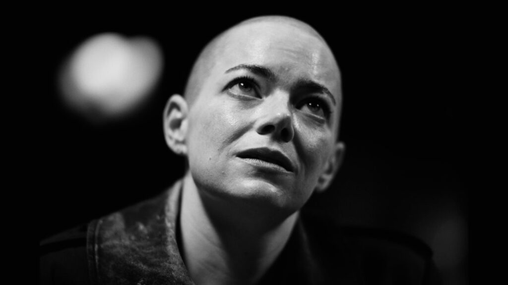 Lo fascinante de ver a la Stone trabajar con Lanthimos —película tras película— es notar cómo la dulce y buena estrella de La La Land, desde chavita radiante de carisma, se ha convertido en una actriz radical, dispuesta a desaparecer dentro de ideas incómodas, a asumir riesgos formales y a renunciar al carisma tradicional – y hasta a su melena- cuando la película lo exige. En Bugonia, ese riesgo se traduce en una actuación tan brutalmente honesta que sostiene buena parte de la tensión conceptual del filme sin necesidad de subrayados ni explicaciones.