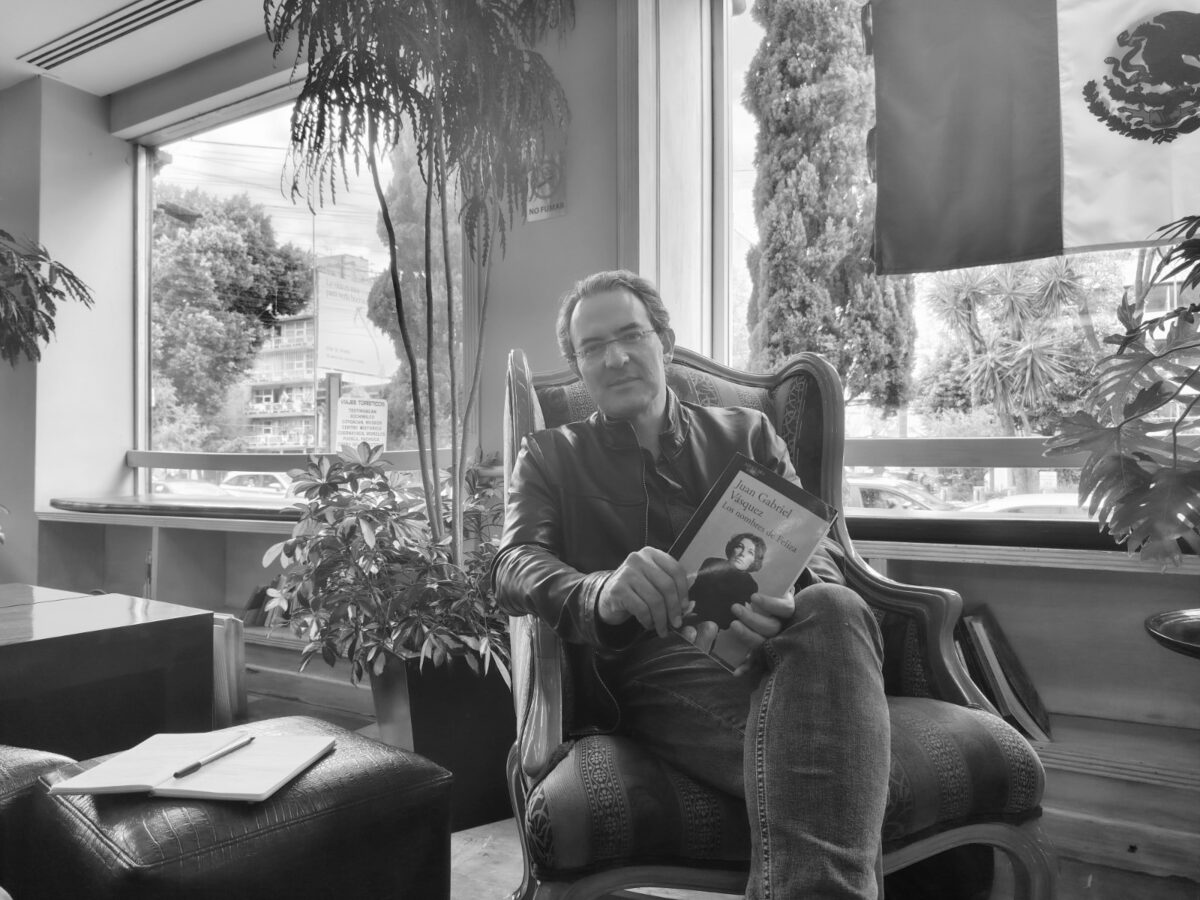 Lo reconocí momentos antes de ingresar el carro al estacionamiento del hotel. En el lobby apenas había gente, por lo que destacaba esa presencia sobria dándole la espalda a la calle. Según veo ahora las fotografías para mi archivo, vestía una chamarra negra de cuero. Días atrás lo había escuchado en una conferencia de prensa en un festival de literatura en Querétaro; sin embargo, sabiendo el encuentro que teníamos pactado para después en la Ciudad de México, no quise acercarme. Reconocí posteriormente que aquello iba a servirme para restarle solemnidad al encuentro, romper el hielo.