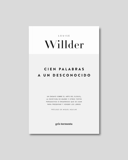 Quizá la más grande revolución de J.D. Salinger no haya sido formar parte del desembarco de Normandía, autoexiliarse después de la monstruosa repercusión que tuvo El guardián entre el centeno o haber sido el primer amor de Oona O’Neill, la mujer de los hoyuelos en las mejillas que pasaría a la posteridad por ser la última Lady Chaplin, sino mantenerse indiferente ante el poder de seducción de los blurbs, esos brevísimos textos promocionales que se usan en las solapas, contraportadas y fajas para vender más libros. Como bien establece el editor y traductor madrileño Miguel Aguilar en el prólogo de Cien palabras a un desconocido, un guiño a Roberto Calasso de la escritora británica Louise Willder, hay adjetivos devenidos en lugares comunes que se han pervertido sin ningún tipo de reparo. Lo cierto es que hay algo en la naturaleza indeleble de los blurbs que los distancia y los distingue de la lógica más corporativa de la industria editorial. Willder no solo repara en el ejercicio creativo de concisión y concentración que implica despertar algún tipo de interés en libros honestos y de receta con un paratexto que, en las manos incorrectas, puede provocar repulsión, también reflexiona sobre el anticuado intercambio de favores que ha sostenido a varios escritores, a veces prescindibles, en la cima de las listas de popularidad o la subestimada y tortuosa labor del editor como cazador de elogios. Después de leer una de las más recientes entregas de la colección Editor de Gris Tormenta, el acto de internarse en un librería, tomar un libro al azar y detenerse en una solapa cobra una profundidad poética-filosófica que emparenta el hecho con las «cartas a un desconocido» de las que hablaba Calasso y, en palabras de la escritora italiana Daniela Cascella, con el «inicio de una exploración».